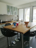 Equipements :WIFI, climatisation, télévision, plaques vitrocéramiques, micro ondes, cafetière avec filtre, lave linge, lave vaisselle, four, frigo avec partie congélateur